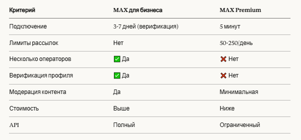 ✅ Два типа MAX — для бизнеса (масштаб) и Premium (быстрый старт)