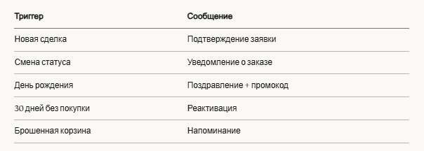 - Триггерные сообщения при смене статуса