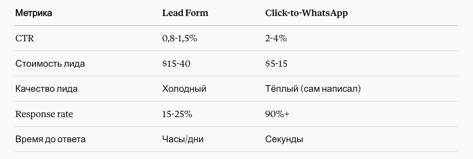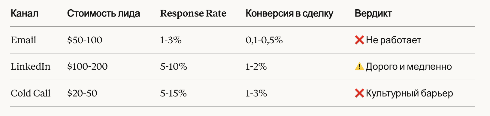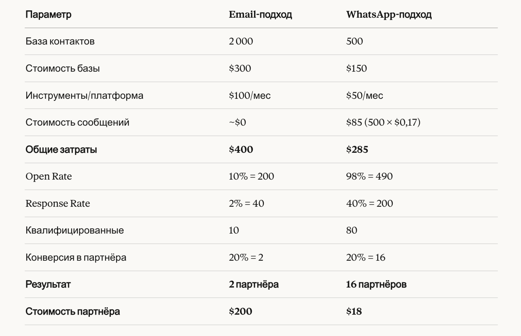 Теперь давайте сравним WhatsApp-аутрич с традиционными каналами на конкретных цифрах.