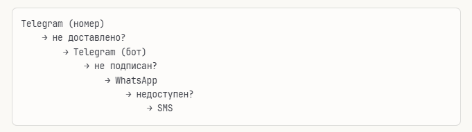 - Каскадные рассылки доставляют сообщение через оптимальный канал — Telegram → WhatsApp → SMS