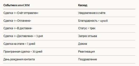 Триггеры каскадов из amoCRM