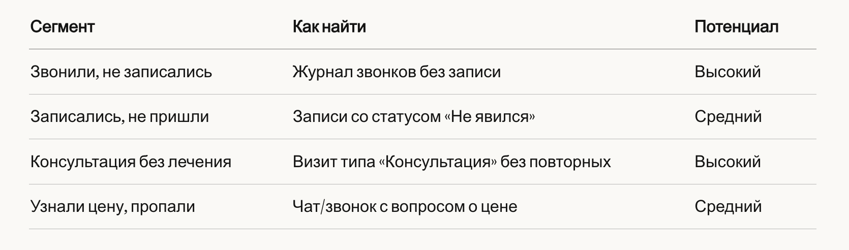 - Те, кто не записался после консультации — потеряны навсегда