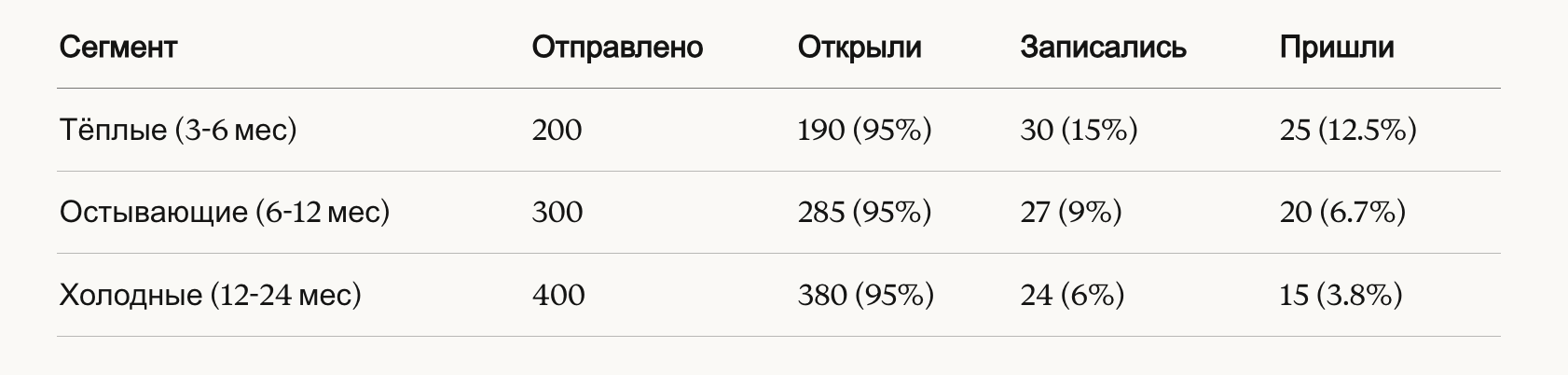 - Кампания возврата «тёплых» пациентов