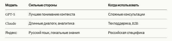 ✅ AI на трёх моделях — GPT-5, Claude, Яндекс — выбор под задачу