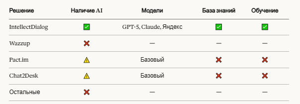 - AI — наличие и уровень AI-ассистента