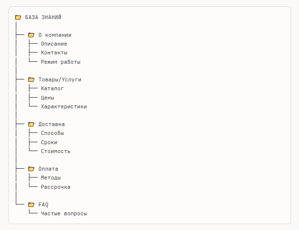 - Отвечает из базы знаний компании