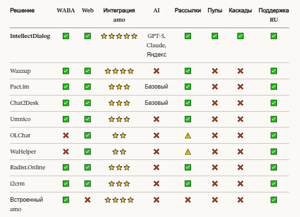 Часть 2. Сравнение 10 решений для интеграции WhatsApp с amoCRM