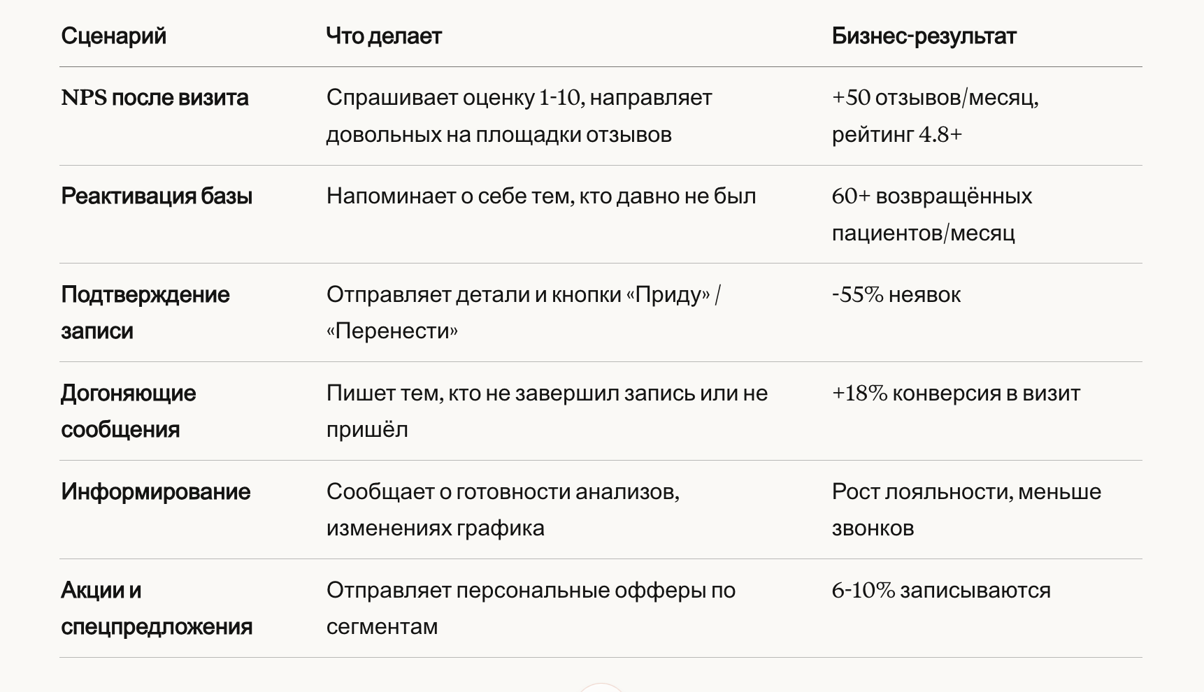 Итоговый эффект: +1,5-2 млн ₸/месяц для клиники на 5 врачей