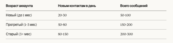 - Лимиты на рассылки — 50-200 сообщений в день (зависит от аккаунта)