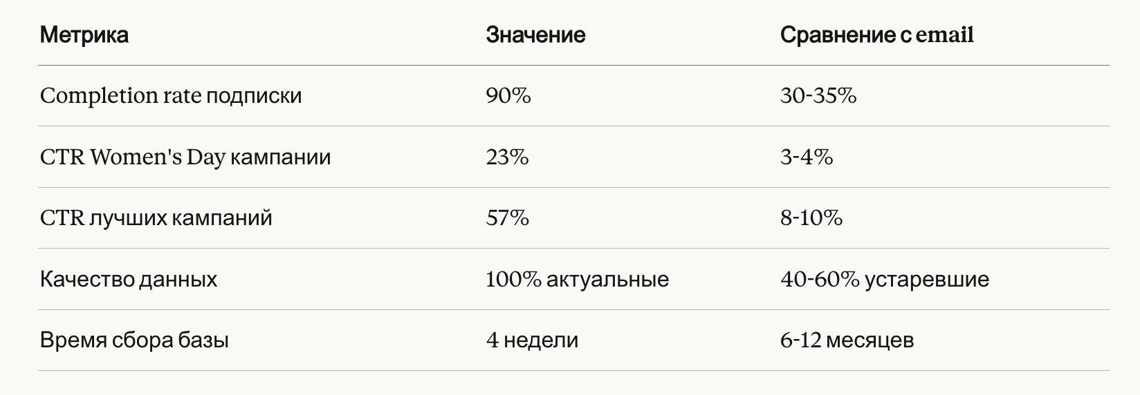 - Низкий opt-out (менее 2%) при соблюдении частоты 2-4 сообщения в месяц