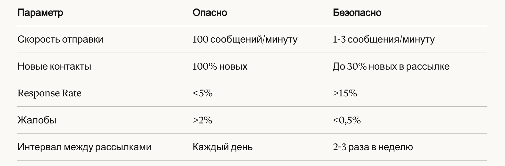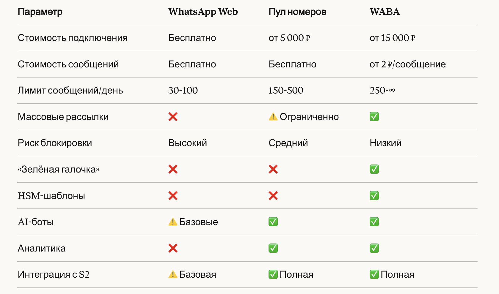 Типичная ошибка: Компания подключает WhatsApp, выгружает базу из S2 и отправляет 5 000 сообщений.