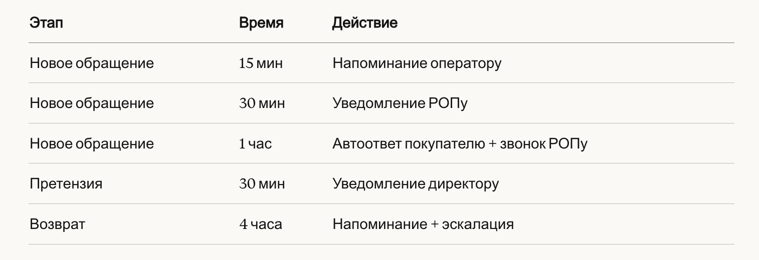 • Эскалация при просрочке